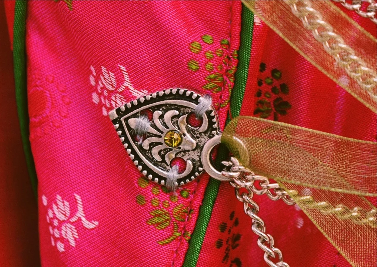 Ich bin ein Fan bei den Accessoires, dass sie nicht so überladen sind. Da ja meist das Dirndl schon recht auffällig wirkt. Daher mein Tipp: Eher Zurückhaltung bei den Accessoires. Diese Halskette hab ich entdeckt, da sie hochwertig aussieht und gleichzeitig noch eine Botschaft mit sich trägt. Passend zu den Satinschuhen oder samtigen Stoffen kann ich nur Halsketten mit Samtbändern empfehlen, idealerweise in einem Creme oder Rosa.